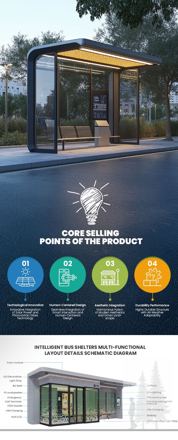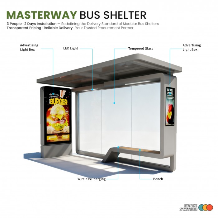 | Bus shelter overall size | 4000(W)*2400(H)*1600(D) |