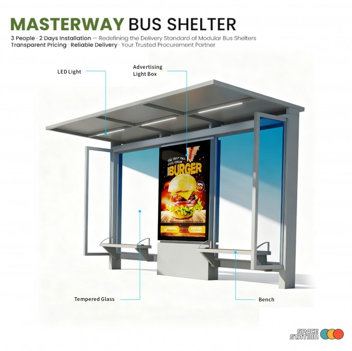 | Bus shelter overall size | 4000(W)*2400(H)*1600(D) |