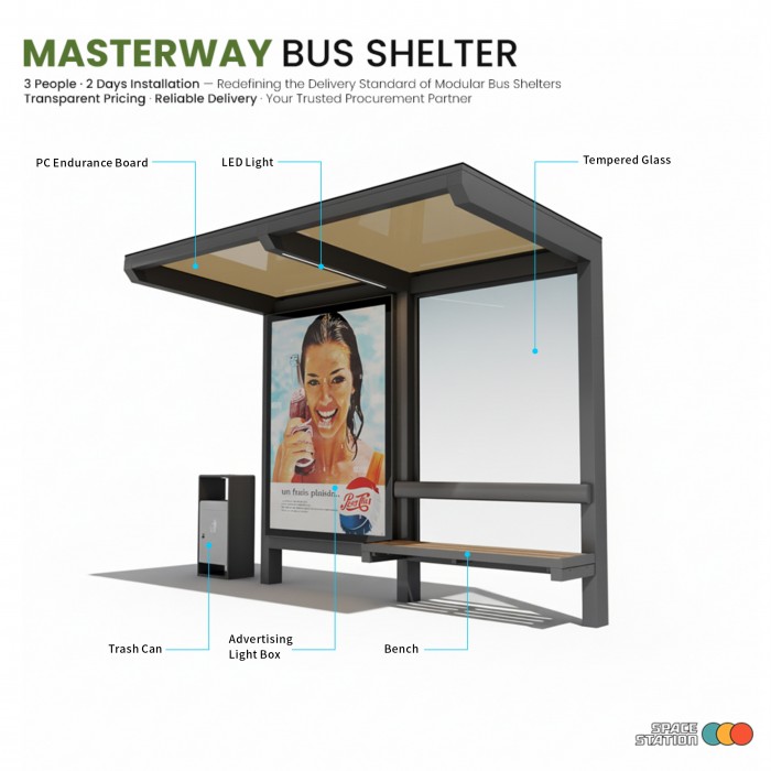 | Bus shelter overall size | 3000(W)*2500(H)*1500(D) |