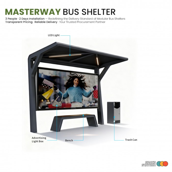 | Bus shelter overall size | 3000(W)*2500(H)*1500(D) |